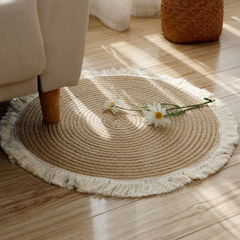 Holen Sie sich noch heute diesen einzigartigen runden Boho-Teppich und verwandeln Sie Ihr Zuhause in eine stilvolle Oase der Gemütlichkeit.