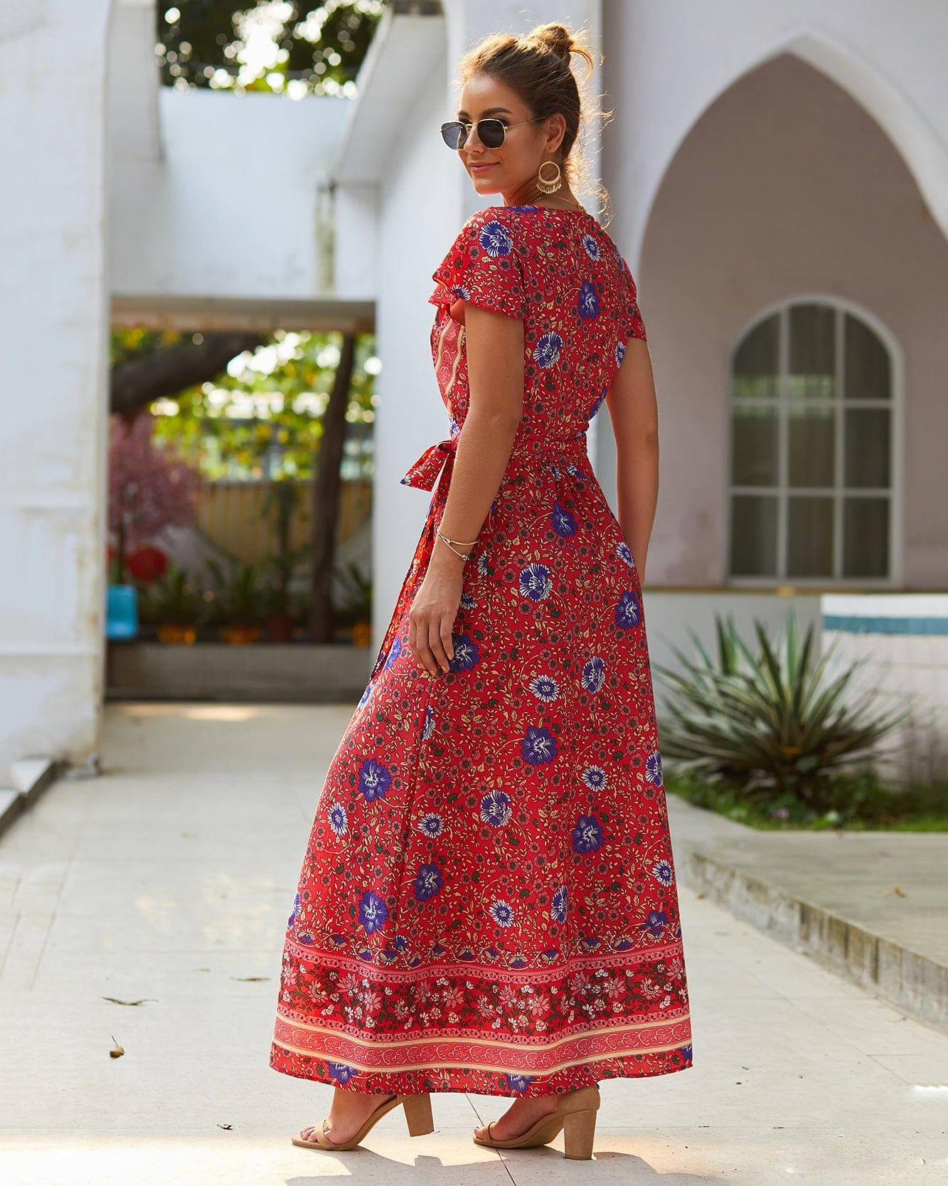 Machen Sie Eindruck, wohin auch immer Sie gehen, mit diesem roten Hippie-Kleid. Seine lebendige Farbe ist der ideale Ausgangspunkt, um einen unvergesslichen Look zu kreieren. Kombinieren Sie es mit bohemischen Accessoires wie massivem Silberschmuck, einer fransigen Ledertasche oder Stiefeletten mit Absatz für einen Look, der Glamour und Originalität perfekt ausbalanciert. Es ist auch die perfekte Wahl für besondere Anlässe und bringt eine Note von Leidenschaft und Romantik in Ihr Outfit.